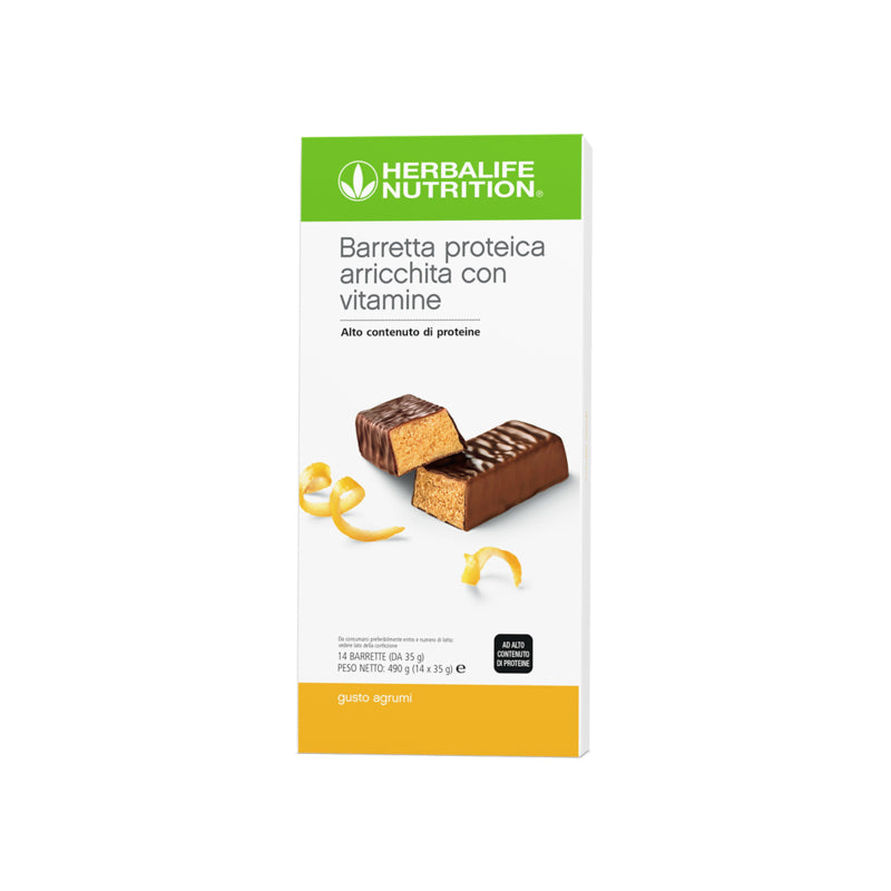La Barretta proteica Herbalife® è ad alto contenuto di proteine (10 g), che contribuiscono alla crescita ed al mantenimento della massa muscolare. Ogni barretta apporta proteine e carboidrati, oltre alle Vitamine del gruppo B (B6 e B12), che contribuiscono al normale metabolismo energetico. Con 137 calorie per barretta, è un delizioso e soffice snack.